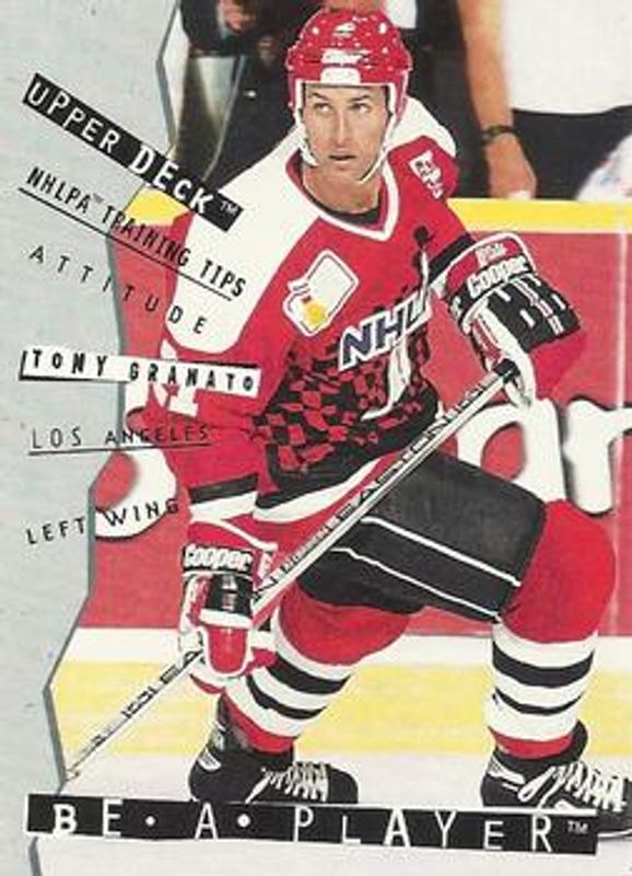The Tony Granato 1994 Upper Deck Be a Player #R98 Base card is 1 of 3 Tony Granato's card variations in the 1994 Upper Deck Be a Player set being tracked by Sports Card Investor, including Autographs, and Wayne Gretzky's 99 All Stars.