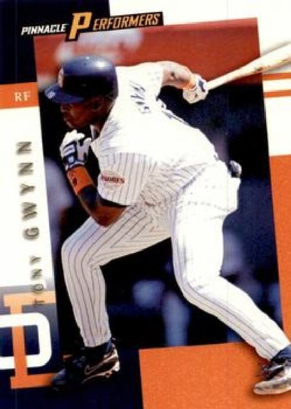 The Tony Gwynn 1998 Pinnacle Performers #8 Base card is 1 of 2 Tony Gwynn's card variations in the 1998 Pinnacle Performers set being tracked by Sports Card Investor, including Base.