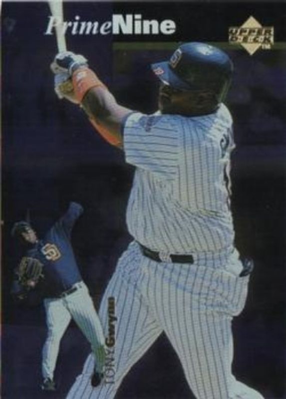 The Tony Gwynn 1998 Upper Deck #PN47 Prime Nine card is 1 of 24 Tony Gwynn's card variations in the 1998 Upper Deck set being tracked by Sports Card Investor, including #136 Base, #15 Base, #458 Base, #500 Base, and #539 Base.