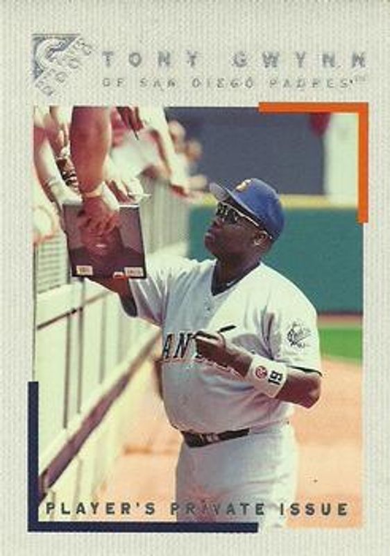 The Tony Gwynn 2000 Topps Gallery #42 Player's Private Issue /250 card is 1 of 15 Tony Gwynn's card variations in the 2000 Topps Gallery set being tracked by Sports Card Investor, including #118 Base, #42 Base, #118 Player's Private Issue /250, #118 Press Plates Black /1, and #42 Press Plates Black /1.