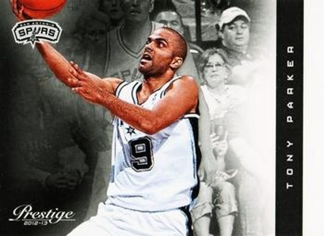 The Tony Parker 2012 Prestige #110 Base card is 1 of 10 Tony Parker's card variations in the 2012 Prestige set being tracked by Sports Card Investor, including Bonus Shots Gold /249, Bonus Shots Black /10, All Stars West, Franchise Favorites, and Inside the Numbers - Materials.