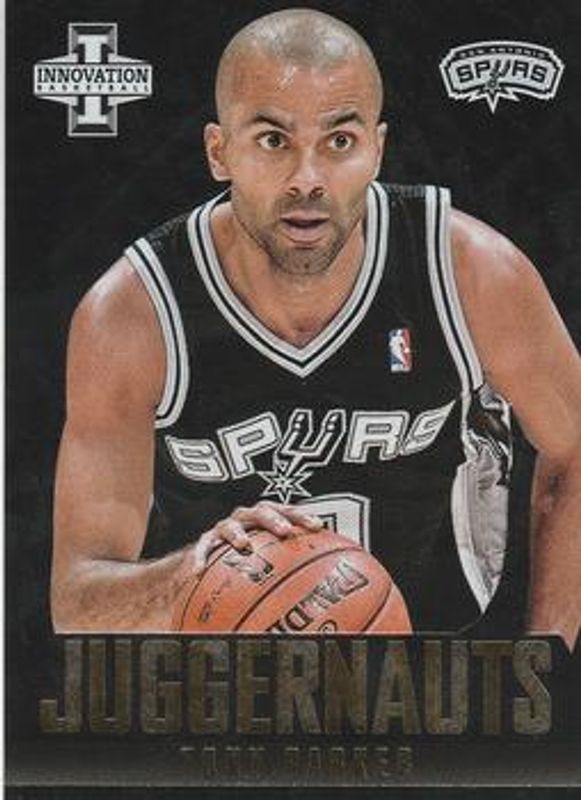 The Tony Parker 2013 Innovation #24 Juggernauts card is 1 of 15 Tony Parker's card variations in the 2013 Innovation set being tracked by Sports Card Investor, including Rookie View - Purple, Rookie View /199, Stat Line Jerseys /125, Stained Glass /(SSP), and Stained Glass - Gold /(SSP).