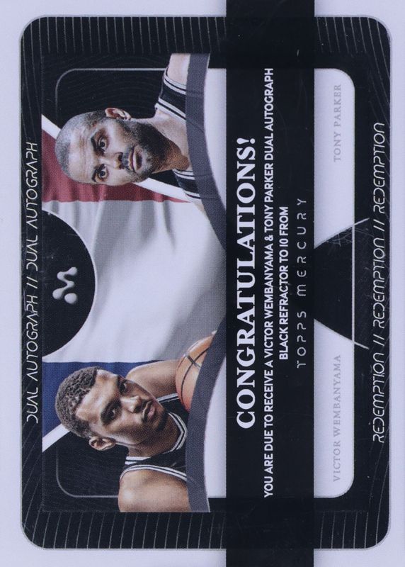 This card is 1 of 3 Tony Parker / Victor Wembanyama's card variations in the 2023 Topps Mercury Victor Wembanyama set being tracked by Sports Card Investor, including Dual Autographs - Red Refractor /5, and Dual Autographs - Superfractor /1.