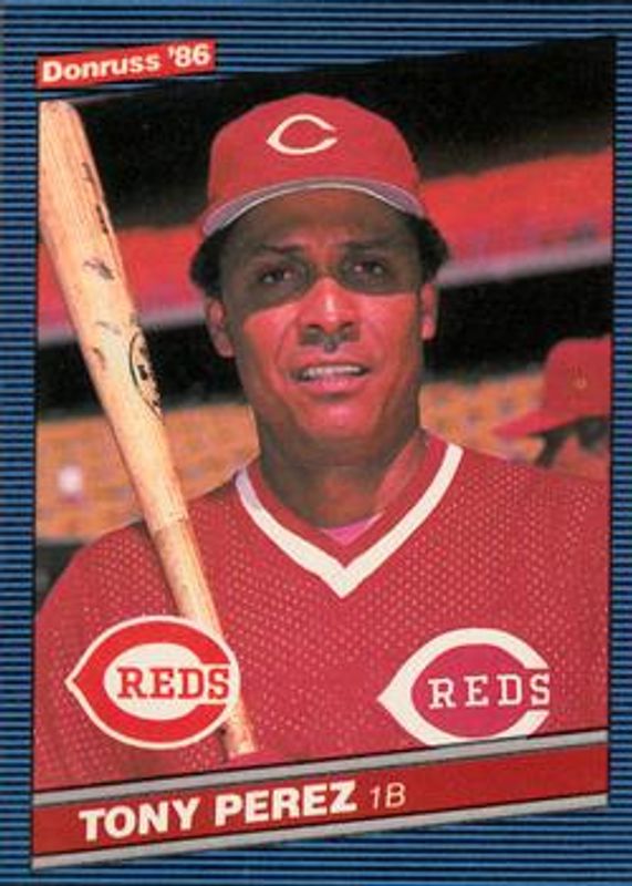 The Tony Perez 1986 Donruss #428 Base card is 1 of 2 Tony Perez's card variations in the 1986 Donruss set being tracked by Sports Card Investor, including Base (Diamond Kings).