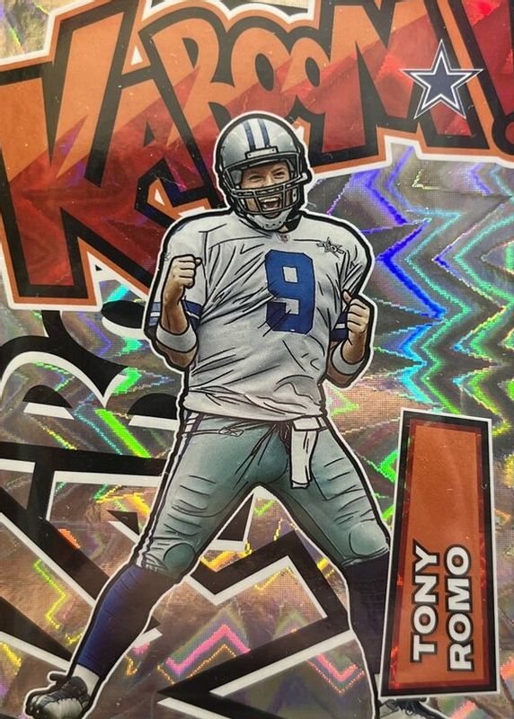 This card is 1 of 3 Tony Romo's card variations in the 2022 Absolute set being tracked by Sports Card Investor, including Kaboom! (Vertical) - Gold /10, and Kaboom! (Vertical) - Green /1.