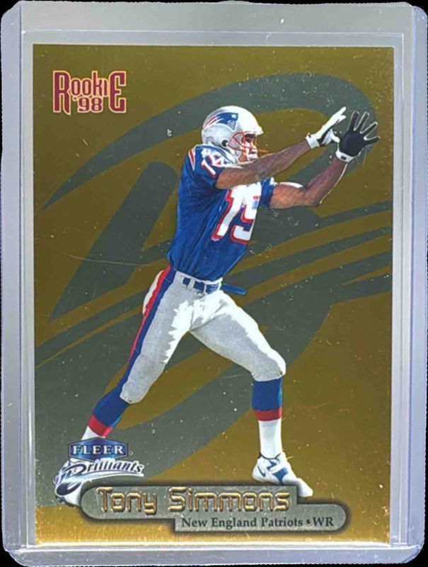The Tony Simmons 1998 Fleer Brilliants #132G Gold /99 Rookie card is 1 of 4 Tony Simmons' card variations in the 1998 Fleer Brilliants set being tracked by Sports Card Investor, including Base, Blue, and 24-Karat Gold /24.