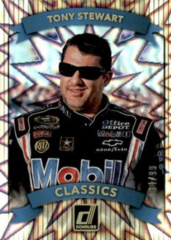 The Tony Stewart 2018 Donruss NASCAR #C2 Classics Xplosion /99 card is 1 of 60 Tony Stewart's card variations in the 2018 Donruss NASCAR set being tracked by Sports Card Investor, including #1 Base, #102b Base, #102a Base, #1 Gold Foil /499, and #102b Gold Foil /499.