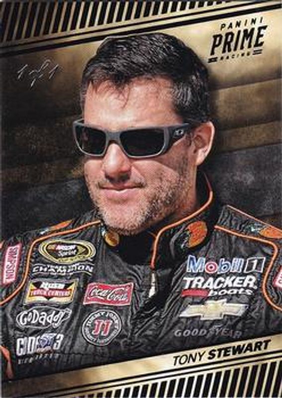 The Tony Stewart 2018 Prime NASCAR #26 Black /1 card is 1 of 113 Tony Stewart's card variations in the 2018 Prime NASCAR set being tracked by Sports Card Investor, including #26 Base /50, #59 Base /50, #92 Base /50, #92 Holo Gold /25, and #59 Holo Gold /25.