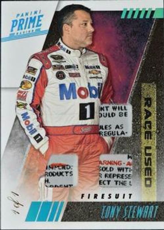 The Tony Stewart 2019 Prime NASCAR #RUT-TS Race Used Trios Firesuits Laundry Tags /1 card is 1 of 63 Tony Stewart's card variations in the 2019 Prime NASCAR set being tracked by Sports Card Investor, including #64 Base /50, #93 Base /50, #93 Black /10, #64 Black /10, and #93 Emerald /5.