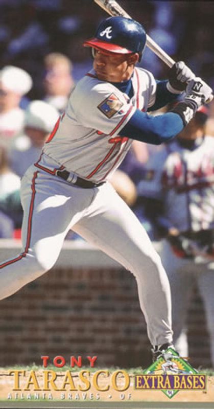 The Tony Tarasco 1994 Fleer Extra Bases #214 Base Rookie card is 1 of 2 Tony Tarasco's card variations in the 1994 Fleer Extra Bases set being tracked by Sports Card Investor, including Rookie Standouts.