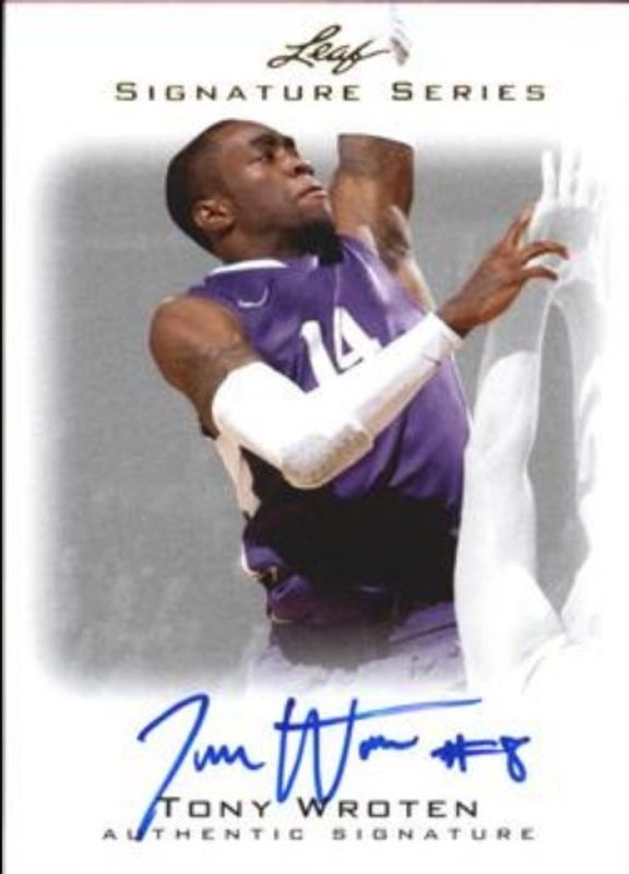The Tony Wroten 2012 Leaf Signature Series #BA-TW1 Base Rookie card is 1 of 37 Tony Wroten's card variations in the 2012 Leaf Signature Series set being tracked by Sports Card Investor, including Silver /99, Gold /25, Blue /10, Red /5, and Printing Plates Black /1.