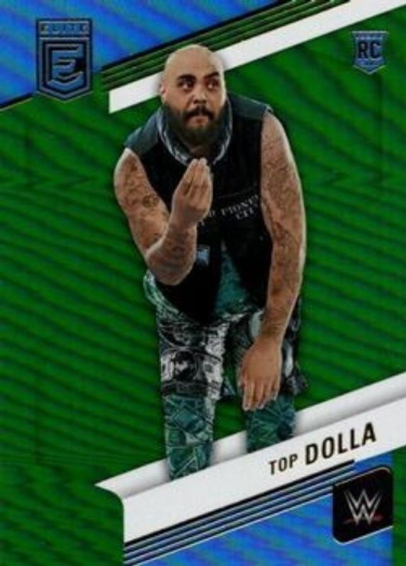 The Top Dolla 2023 Elite WWE #23 Green Rookie card is 1 of 23 Top Dolla's card variations in the 2023 Elite WWE set being tracked by Sports Card Investor, including Base, Pink, Razzle Dazzle, Red, and Status Explosion /275.