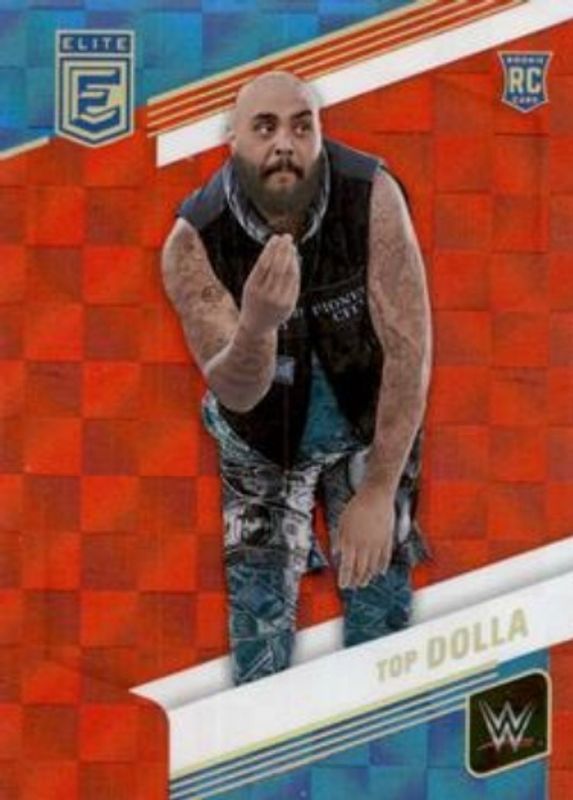 The Top Dolla 2023 Elite WWE #23 Red Rookie card is 1 of 23 Top Dolla's card variations in the 2023 Elite WWE set being tracked by Sports Card Investor, including Base, Green, Pink, Razzle Dazzle, and Status Explosion /275.