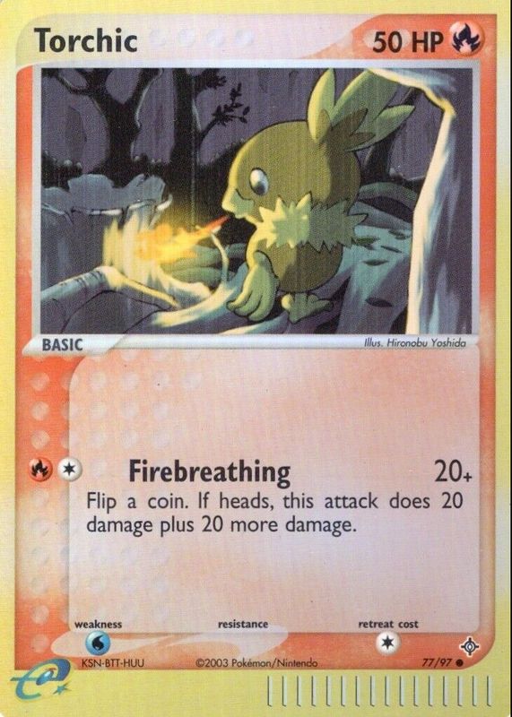 The Torchic 2003 EX: Dragon #77/97 Reverse Holo card in Raw TCG (Near Mint) condition has moved up $8.28 (+82.9%) in the last 30 days and was last sold for $18.27 .