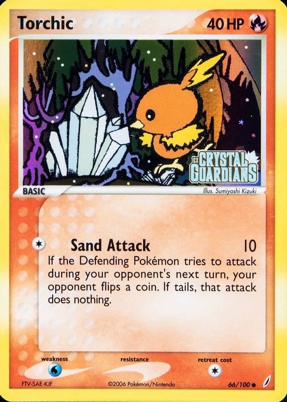 The Torchic 2006 EX: Crystal Guardians #066/100 Base card in Raw TCG (Near Mint) condition has moved down -$2.46 (-62.3%) in the last 30 days and was last sold for $1.49 .
