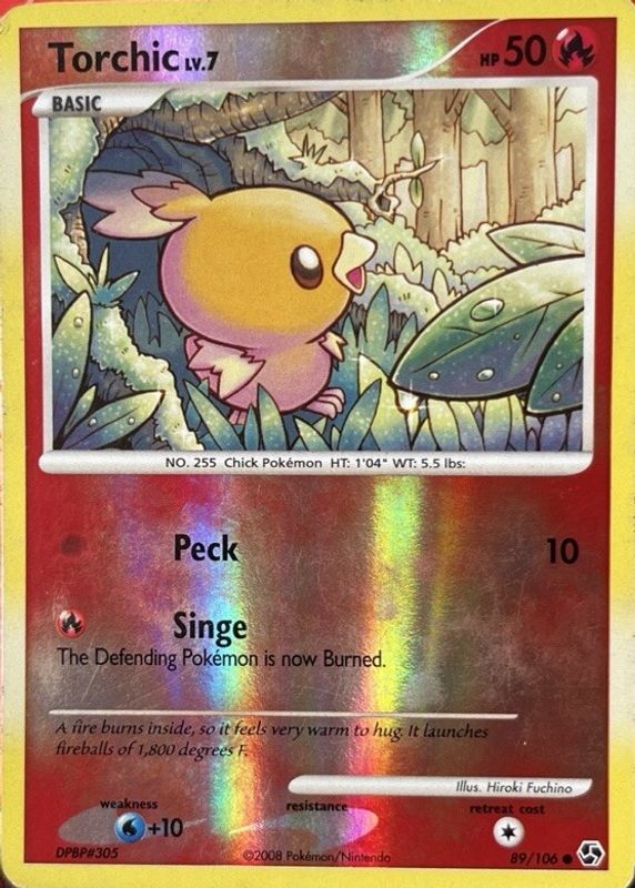 The Torchic 2008 Diamond & Pearl: Great Encounters #089/106 Reverse Holo card in Raw TCG (Near Mint) condition has moved down -$4.00 (-36.4%) in the last 30 days and was last sold for $7.00 .