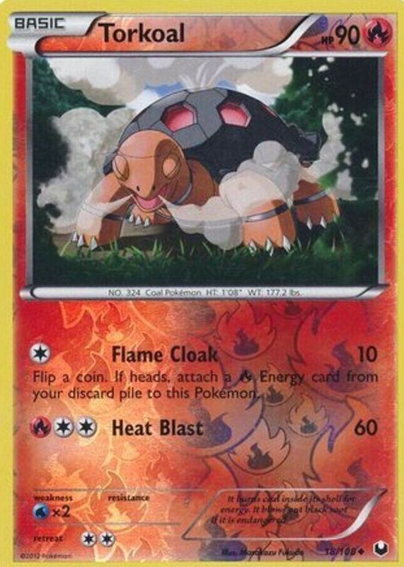 Torkoal 2012 Black & White: Dark Explorers #018/108 Reverse Holo RAW TCG (LIGHTLY PLAYED) Price Guide