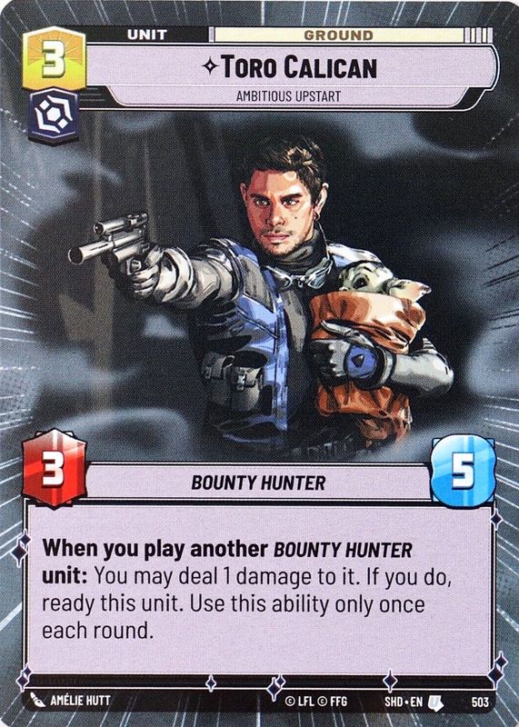This card is 1 of 4 Toro Calican's card variations in the 2024 Shadows of the Galaxy set being tracked by Sports Card Investor, including Base, Foil, and Hyperspace Foil.