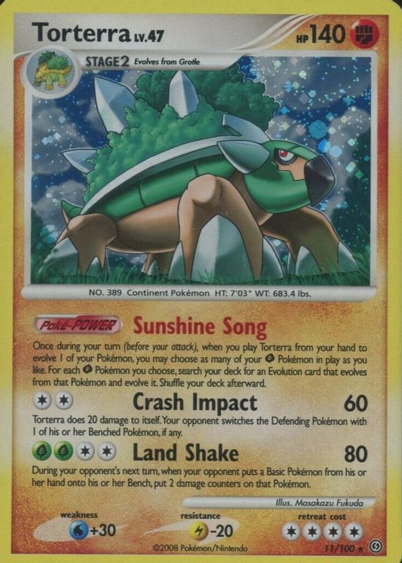 Torterra 2008 Diamond & Pearl: Stormfront #011/100 Holo RAW TCG (LIGHTLY PLAYED) Price Guide