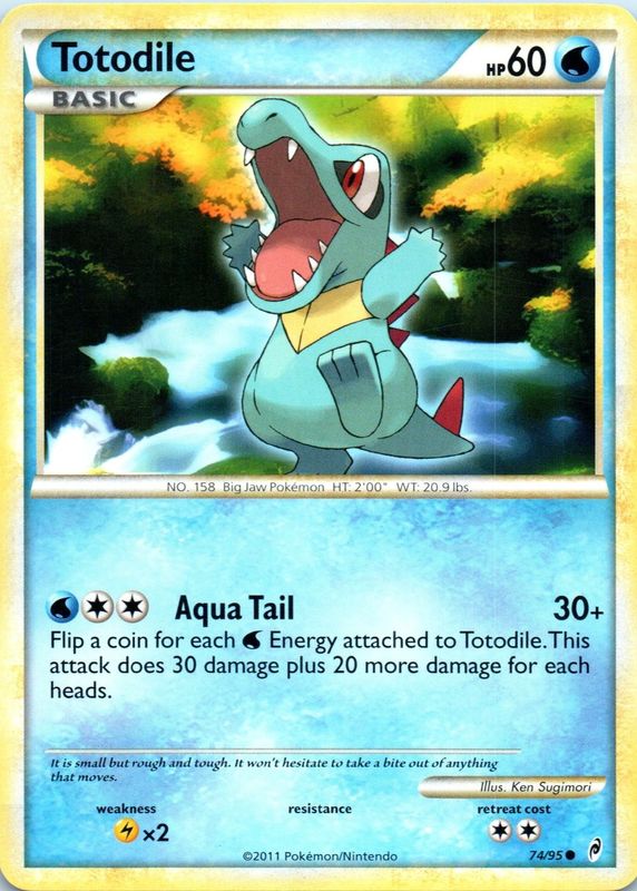 The Totodile 2011 Call of Legends #74/95 Base card in Raw TCG (Lightly Played) condition has moved up $2.02 (+113%) in the last 30 days and was last sold for $3.80 .