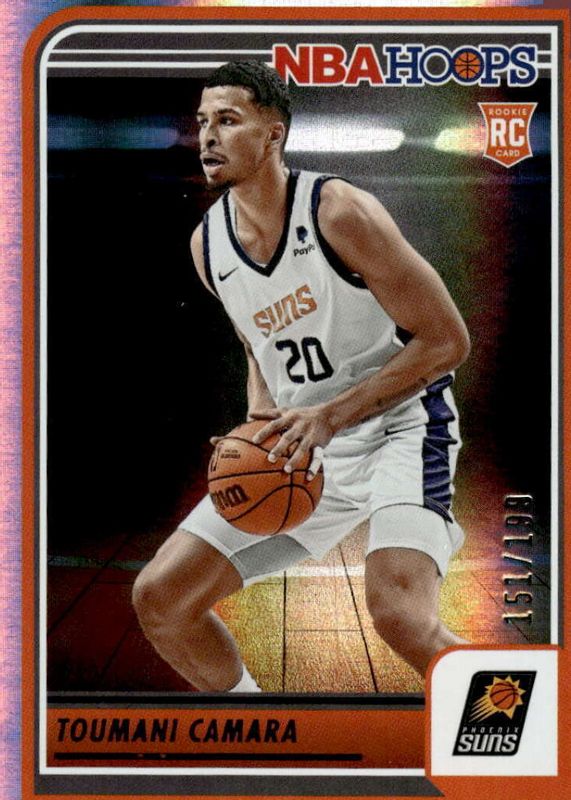 The Toumani Camara 2023 Hoops #231 Premium Box Set /199 Rookie card in Raw condition has not changed in price in the last 30 days and was last sold for $2.54 .