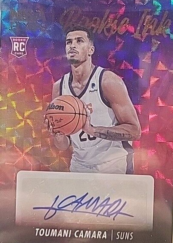 The Toumani Camara 2023 Hoops #RI-TOU Rookie Ink - Hyper Gold card in Raw condition has not changed in price in the last 30 days and was last sold for $6.50 .