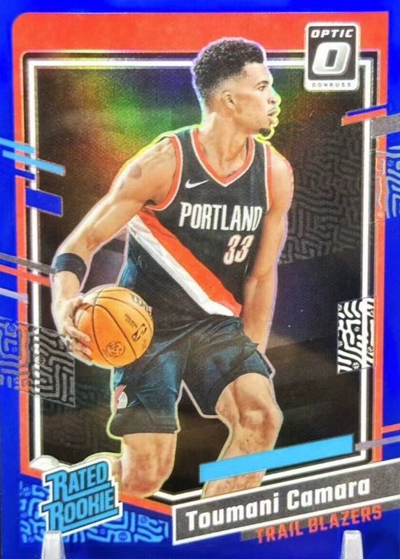 The Toumani Camara 2023 Optic #204 Blue /49 Rookie card in Raw condition has not changed in price in the last 30 days and was last sold for $10.57 .