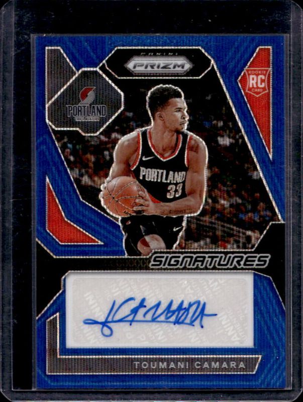The Toumani Camara 2023 Prizm #RSI-TOU Rookie Signatures - Blue Wave card is 1 of 96 Toumani Camara's card variations in the 2023 Prizm set being tracked by Sports Card Investor, including Base, Blue Wave, Choice Blue Yellow Green, Fast Break, and Green.