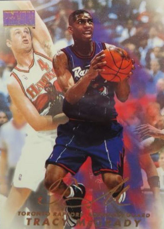 This card is 1 of 5 Tracy McGrady's card variations in the 1998 Skybox Premium set being tracked by Sports Card Investor, including Star Rubies /50, Just Cookin', Autographics, and Autographics Blue /50.