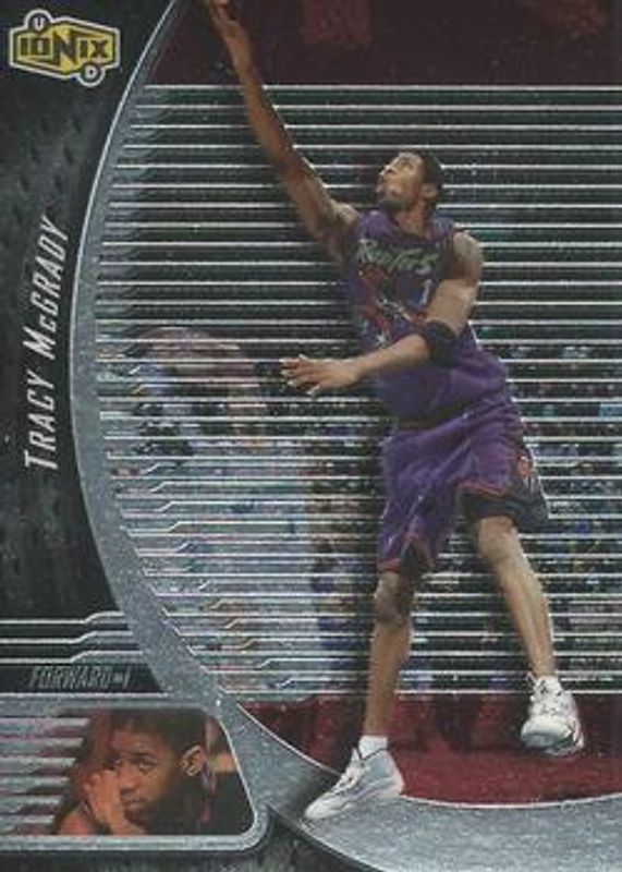 The Tracy McGrady 1998 Upper Deck Ionix #55 Base card is 1 of 2 Tracy McGrady's card variations in the 1998 Upper Deck Ionix set being tracked by Sports Card Investor, including Reciprocal /100.