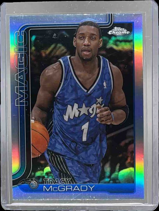 The Tracy McGrady 2025 Topps Chrome #245 Refractor card is 1 of 102 Tracy McGrady's card variations in the 2025 Topps Chrome set being tracked by Sports Card Investor, including Base, 1st Day Issue Refractor, Basketball Refractor, Box Set Refractor, and Lightboard Logo Refractor.