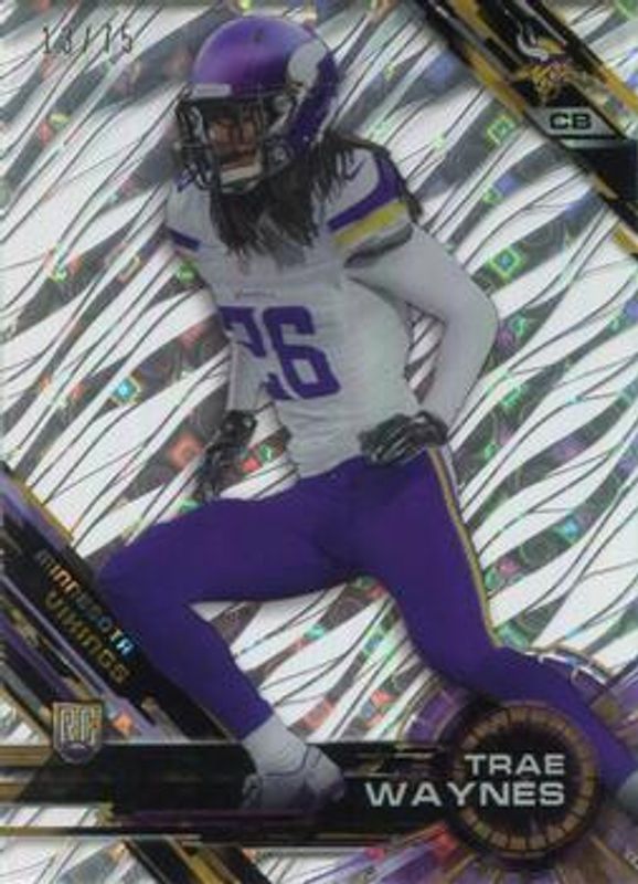 The Trae Waynes 2015 Topps High Tek #43 Tidal Diffractors /75 Rookie card is 1 of 29 Trae Waynes' card variations in the 2015 Topps High Tek set being tracked by Sports Card Investor, including Base, Pattern 2 Spiral Dots, Pattern 3 Circuit Board Pipes, Pattern 4 Cubes Chain Link, and Pattern 5 Pyramids Diamonds.