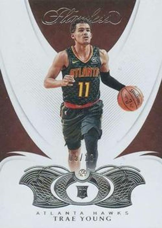 The Trae Young 2018 Flawless #82 Base /5 Rookie card is 1 of 43 Trae Young's card variations in the 2018 Flawless set being tracked by Sports Card Investor, including Double /10, Triple /5, Bronze /2, Platinum /1, and Flawless Patch Autographs /25.