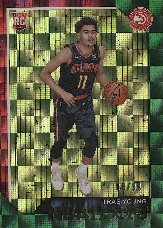 2018-19 Trae Young Green Checkerboard /99 Hoops #250 Rookie RC Beautiful Card