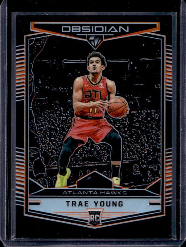 The Trae Young 2018 Obsidian #73 Electric Etch Orange /25 Rookie card is 1 of 20 Trae Young's card variations in the 2018 Obsidian set being tracked by Sports Card Investor, including Base, Electric Etch Purple /49, Electric Etch Green /15, Electric Etch Yellow /10, and Electric Etch Red /5.
