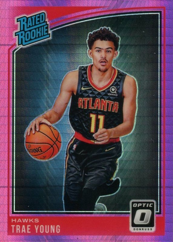 TRAE YOUNG RC 2018-19 DONRUSS OPTIC RATED ROOKIE HYPER PINK PRIZM 198 HAWKS