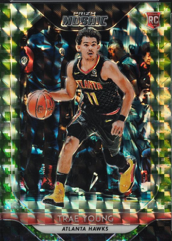 This card is 1 of 9 Trae Young's card variations in the 2018 Prizm Mosaic set being tracked by Sports Card Investor, including Base, Blue, Green, Red, and Orange /99.