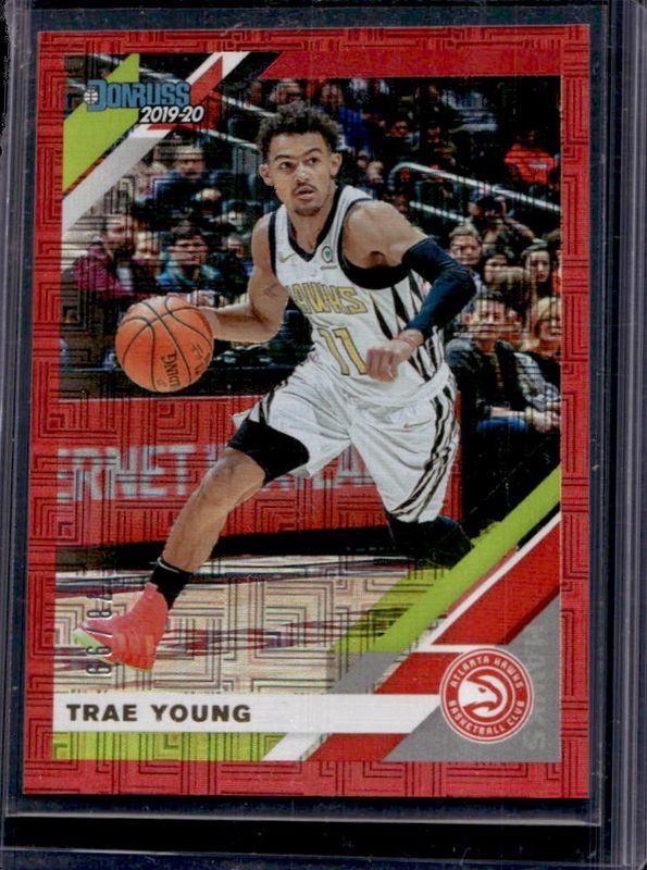 The Trae Young 2019 Donruss #1 Infinite Red /99 card is 1 of 38 Trae Young's card variations in the 2019 Donruss set being tracked by Sports Card Investor, including Base, Green Flood, Green & Yellow Laser, Orange Laser, and Press Proof Silver /349.