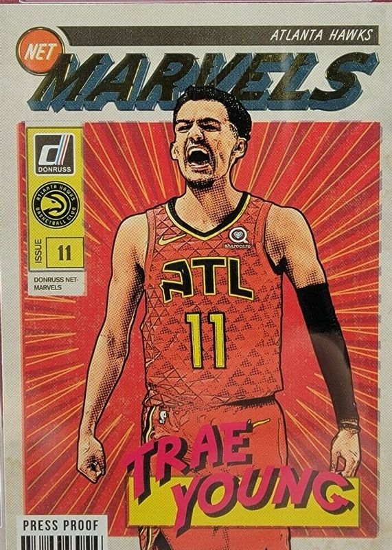 The Trae Young 2019 Donruss #16 Net Marvels - Press Proof card in Raw condition has not changed in price in the last 30 days and was last sold for $5.50 .