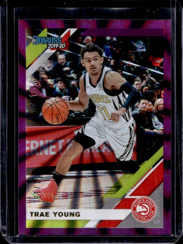 The Trae Young 2019 Donruss #1 Purple Laser /15 card is 1 of 38 Trae Young's card variations in the 2019 Donruss set being tracked by Sports Card Investor, including Base, Green Flood, Green & Yellow Laser, Orange Laser, and Press Proof Silver /349.