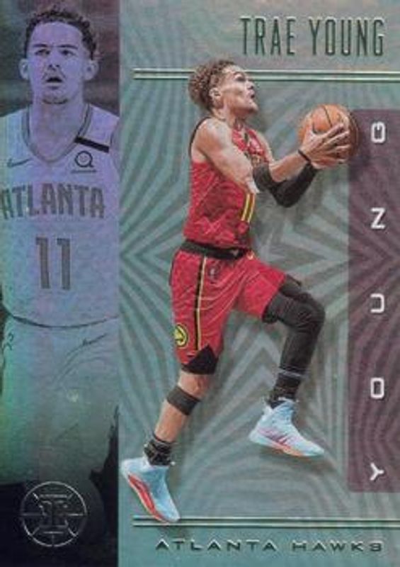 The Trae Young 2019 Illusions #136 Trophy Collection Emerald card is 1 of 62 Trae Young's card variations in the 2019 Illusions set being tracked by Sports Card Investor, including Base, Trophy Collection Bronze, Trophy Collection Orange, Trophy Collection Pink, and Trophy Collection Sapphire.