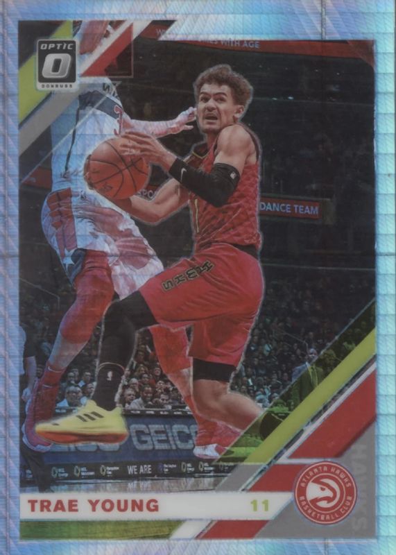 This card is 1 of 40 Trae Young's card variations in the 2019 Optic set being tracked by Sports Card Investor, including Base, Blue Velocity, Checkerboard, Choice, and Choice Red & Green.