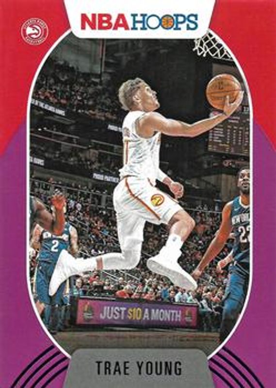 The Trae Young 2020 Hoops #46 Purple card is 1 of 74 Trae Young's card variations in the 2020 Hoops set being tracked by Sports Card Investor, including #258 Base, #46 Base, #46 Blue, #46 Hyper Blue, and #46 Neon Green.