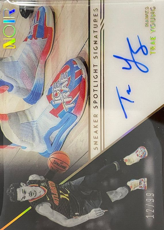 The Trae Young 2020 Noir #SSP-TRY Sneaker Spotlight Signatures /99 card in Raw condition has not changed in price in the last 30 days and was last sold for $599.99 .