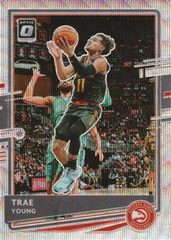 The Trae Young 2020 Optic #2 Fanatics Box Set card is 1 of 122 Trae Young's card variations in the 2020 Optic set being tracked by Sports Card Investor, including Base, Blue Pulsar, Blue Velocity, Checkerboard, and Choice Red & Green.