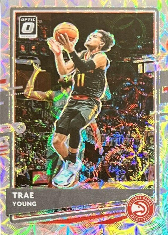 This card is 1 of 122 Trae Young's card variations in the 2020 Optic set being tracked by Sports Card Investor, including Base, Blue Pulsar, Blue Velocity, Checkerboard, and Choice Red & Green.