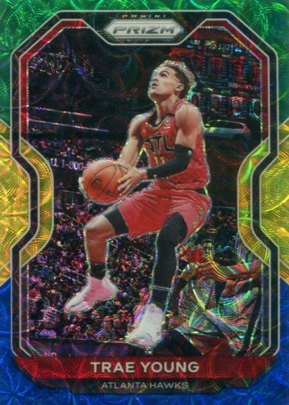 2020-21 Panini Prizm #64 Trae Young Choice Blue, Yellow and Green Prizms