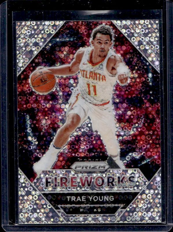 The Trae Young 2020 Prizm #28 Fireworks - Fast Break card is 1 of 90 Trae Young's card variations in the 2020 Prizm set being tracked by Sports Card Investor, including Choice Blue Yellow Green, Fast Break, Green, Green Ice, and Hyper.