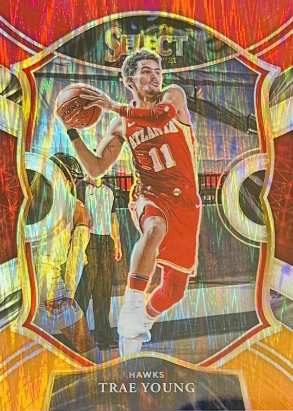 2020-21 Panini Select Concourse Trae Young Red, White, & Orange Flash Prizm No.2