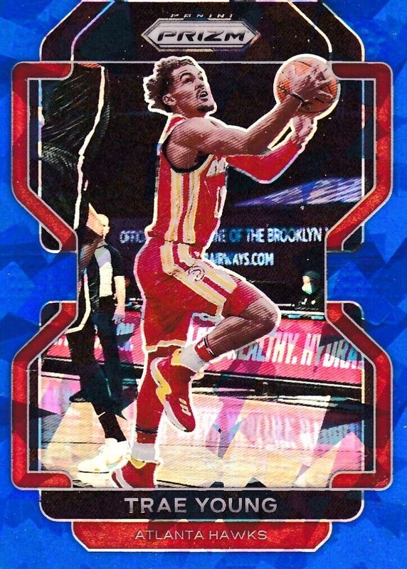 2021-22 Panini Prizm #26 Trae Young Blue Cracked Ice Atlanta Hawks /125